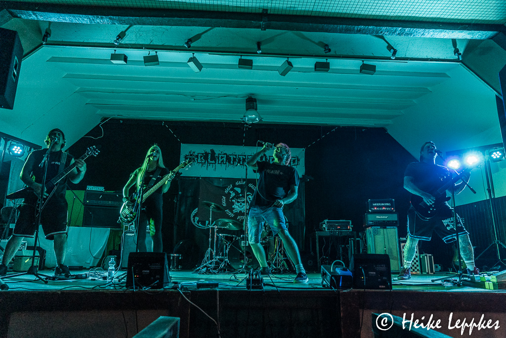 Da man heute fast im Zeitplan geblieben ist, wie Martin beim Abbau erleichtert feststellt, nutze ich die Gelegenheit, mal was früher zu Hause zu sein, und mache mich direkt auf den Heimweg. Jetzt überlege ich ja, ob ich mir das Escalate Festival gebe, das am 09.10. an gleicher Stelle stattfinden wird. Da bringt Blattturbo dann gleich 10 (!!!) Bands auf die Bühne…