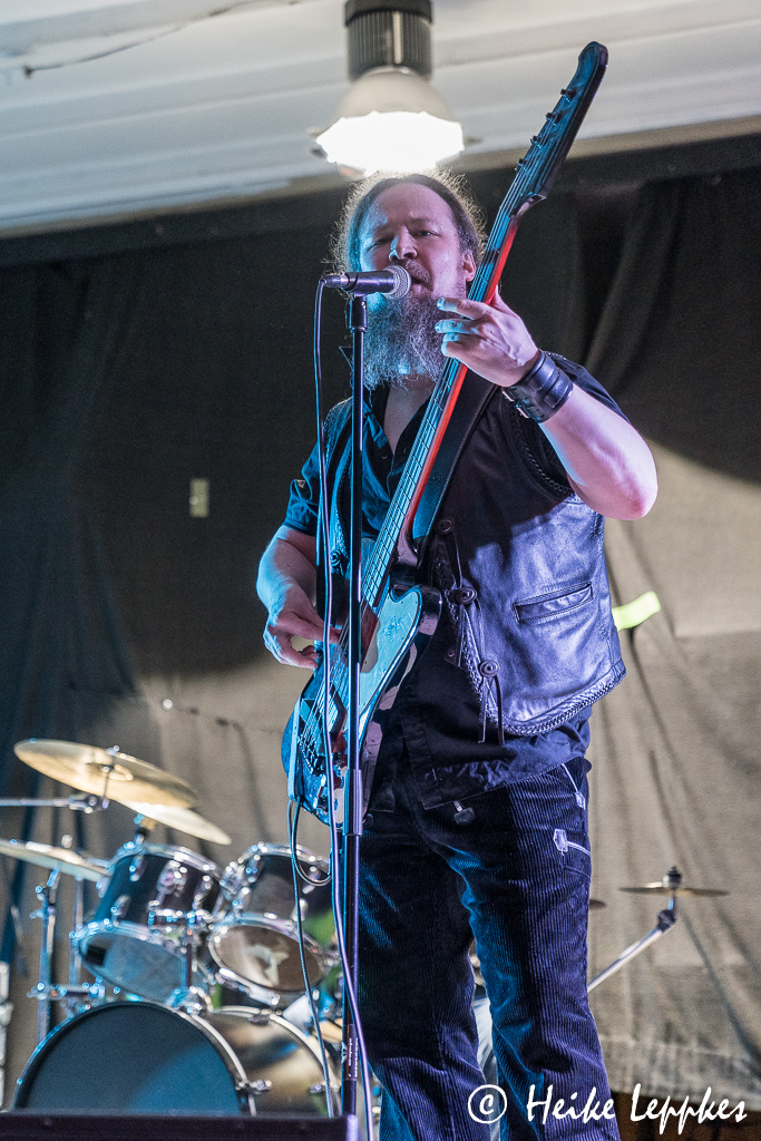 Dead Mans Soul stehen als erste Band des Tages auf der Bühne. Bevor die aber mit ihrem coolen Mix aus Hard Rock und Heavy Metal loslegen, erfahren wir, dass auch Drummer Sebastian von der Unwetterkatastrophe betroffen ist. Gott sei Dank war bei ihm „nur“ der Keller vollgelaufen, dabei hat es dann aber auch das Schlagzeug erwischt. So spielt er heute auf dem Drumset von Northern Light. Im Oktober letzten Jahres haben Dead Mans Soul ihre EP No Compromise veröffentlicht, aber neben den darauf befindlichen vier Tracks haben sie natürlich noch weitere Songs im Gepäck. Die Frage von Sebastian (Gitarre), wer denn Dead Mans Soul schon mal live gesehen habe, meldet sich ungefähr die Hälfte der Anwesenden. Ich gehöre wie Martin von Blattturbo zur anderen Hälfte, auch wenn Dead Mans Soul ja in deren Bandpool sind. Der letzte Song im regulären Programm ist Glasses High, der laut Sven der einzige langsamere von Dead Mans Soul ist. Aber die Zugabe Lifestyle nimmt noch einmal ordentlich Fahrt auf. Mich erinnert der Song ein wenig an Motörhead, und das ist sicherlich nicht der schlechteste Vergleich.