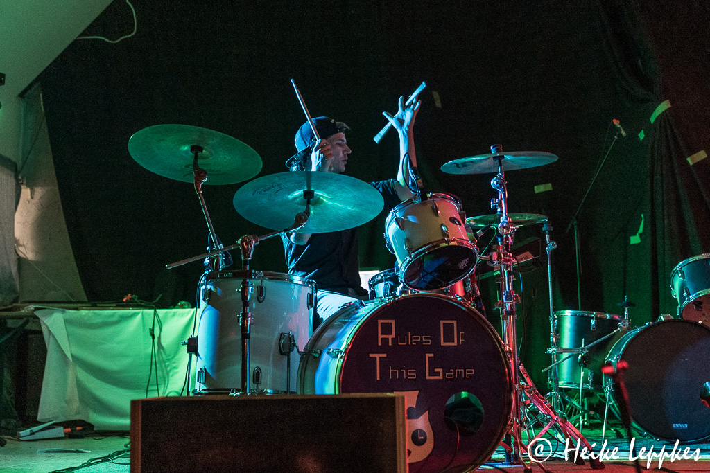 Die Organisation dieser Veranstaltung liegt in den bewährten Händen von Blattturbo, und als ich eine knappe Stunde vor Einlass am Klosterhof ankommen, platze ich mit meinem freundlichen „Hallo“ gleich mal in das Interview, das Martin im Eingangsbereich gerade mit Rules Of This Game führt. Die beiden hatte ich schon vor der Linse, und die Freude, sich mal wiederzusehen, ist beiderseitig. Und so geht es drinnen auch gleich weiter. Das ist dann für mich, auch wenn ich noch nie im Klosterhof war, so eine Art „Nach-Hause-Kommen“ und einer der Gründe, warum ich die Undergroundszene so liebe.