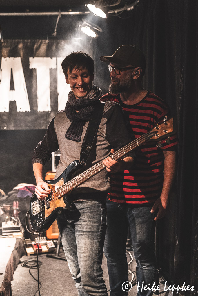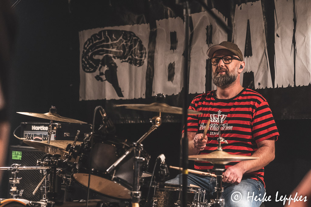 Frisch gestärkt geht’s dann zum zweiten Teil des Sets, und auch hier sorgt Sänger Martin mal kurz für Verwirrung bei den anderen Bandmitgliedern, als er hin und wieder mal einen anderen Song ankündigt, als die Reihenfolge auf der Setlist es eigentlich vorgeben würde. Aber die Männer kennen natürlich ihre eigenen Songs. Da muss dann vielleicht außerplanmäßig mal die Gitarre umgestimmt werden, und weiter geht’s. Und Braingate können nicht nur rockig, es gibt auch Pop mit einem Hauch von Reggae, der trotz des fiesen Wetters draußen hier drinnen für Urlaubsfeeling sorgt.