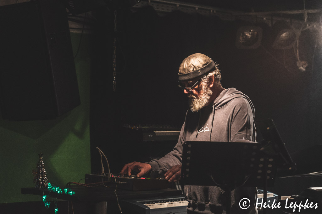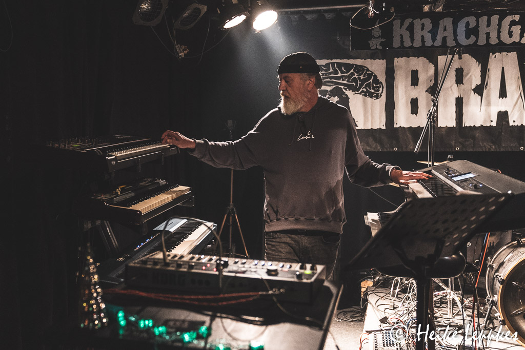 Um die zehn Jahre gibt es Braingate schon, das Besetzungskarussell hat sich aber wohl schon einige Male gedreht. Zwei der Ursprungsmitglieder stehen heute aber noch auf der Bühne, nämlich Thomas und Theo, der heute seine 6 (in Worten: sechs!!) Keyboards mitgebracht hat. Wie er da so zwischen den Instrumenten steht, erinnert er mich manchmal ein wenig an Rick Wakeman (ex-Yes), und das ist, wie ich höre, tatsächlich auch eine der Lieblingsbands von Theo. Nachdem Highway To Heaven uns ja letzten Sonntag mit Coversongs unterhalten haben, bringen Braingate ihre eigenen Werke mit. Die bewegen sich, grob gesagt, im (Progressive) Rock vor allem der 70er Jahre, können auch mal mit ein paar poppigen Elementen aufwarten und lassen mir immer mal wieder Bandnamen wie The Doors, Toto oder Yes durchs Hirn schießen. Viele der Songs auf der Setliste stammen vom Album Standing Tall aus 2017, aber auch danach waren Braingate fleißig und haben einige Singles veröffentlicht. Den einzig deutschsprachigen Song, Treibsand, haben sie heute auch im Programm, und Sänger Martin kündigt schon mal an, dass er in Englisch weitersingen würde, wenn er den deutschen Text nicht mehr wüsste. Das war dann die sich selbst erfüllende Prophezeiung, denn nachdem er statt des eigentlichen Textes plötzlich singt „ich weiß den Text nicht mehr“ – dabei allerdings vorbildlich im Takt bleibt 😀 – wechselt er doch kurzfristig ins Englische. Tja, das ist heute die zweite Show, die Braingate in diesem Jahr spielen, da kann man dann auch mal kurz raus sein.