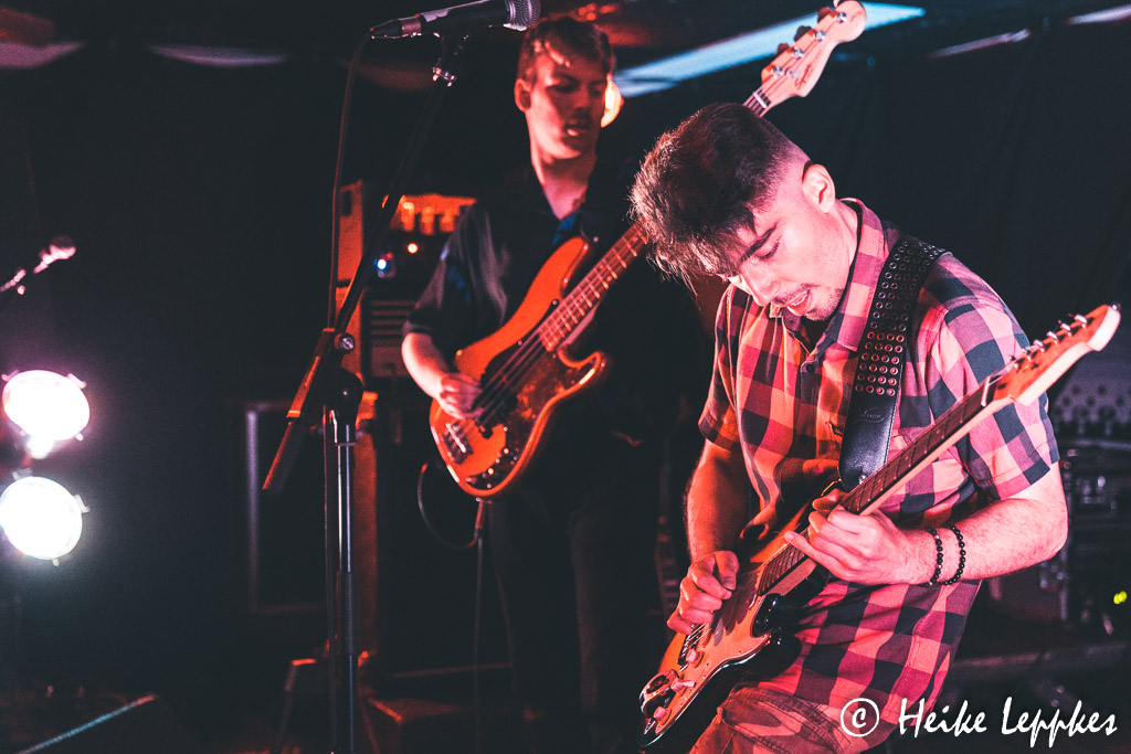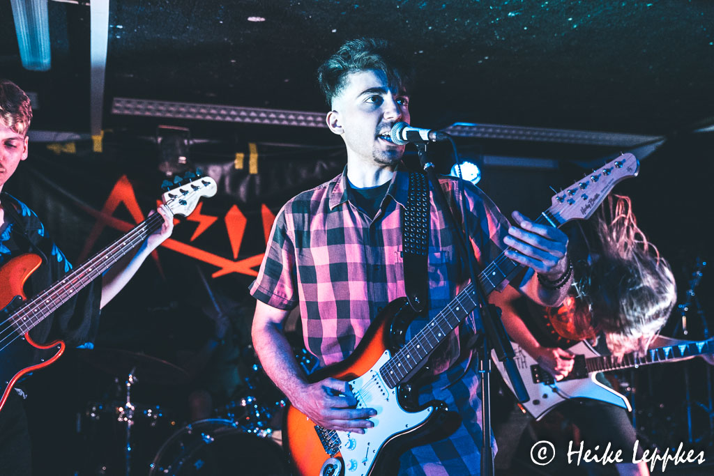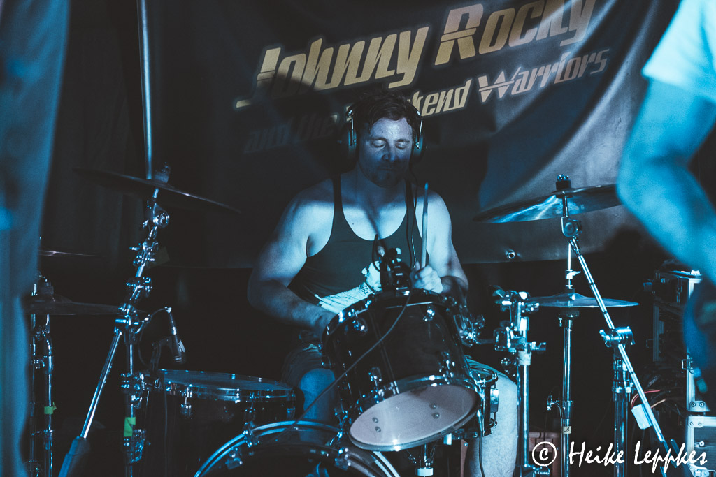 Am JGZ Bauhaus angekommen treffe ich dann auch gleich auf einen sehr gut gelaunten Thorsten, und auch die Jungs von Druckphase stehen noch sehr entspannt vor der Tür. Die hatte ich beim SPH Music Masters vor einigen Jahren schon mal vor der Linse und freue mich, sie mal wiederzusehen. Auch Absinth sind keine Unbekannten für mich, aber ich wundere mich, dass sich die Jungs auch noch an mich erinnern. Vor allem erinnert sich ihr Schlagzeuger daran, dass ich, nachdem ich sie in der Halle am Rhein Anfang 2019 zum ersten Mal erleben durfte, auf Facebook die Frage gestellt hatte, wie alt, oder eher wie jung, er wohl sein mag. 😀 Das heutige Line-Up komplettieren Johnny Rocky and The Weekend Warriors. Dass meine Frage, ob denn auch mein Lieblingssong Party All Alone auf der Setliste steht, mit „ja“ beantwortet wird, lässt mich der Show schon mal noch freudiger entgegenblicken.