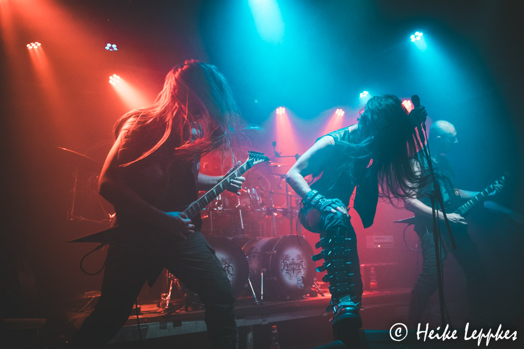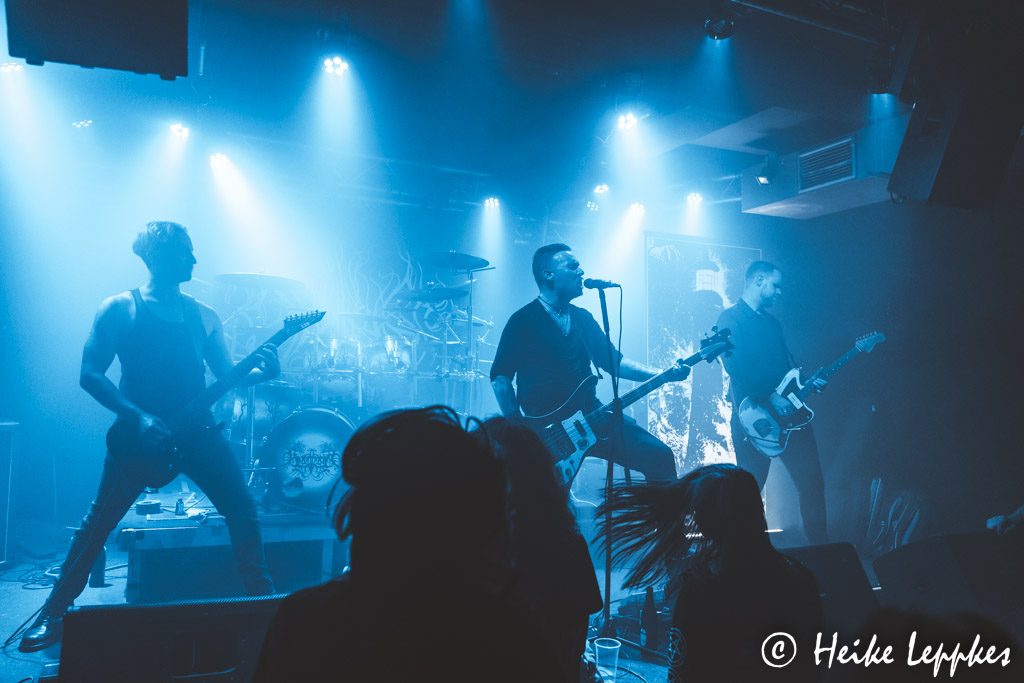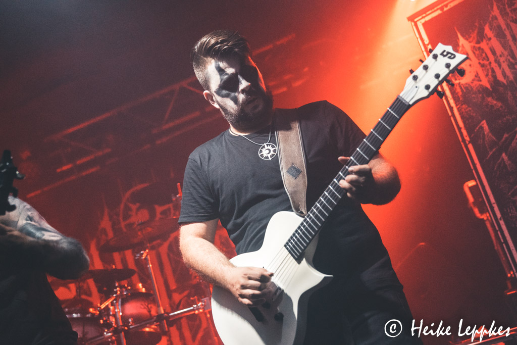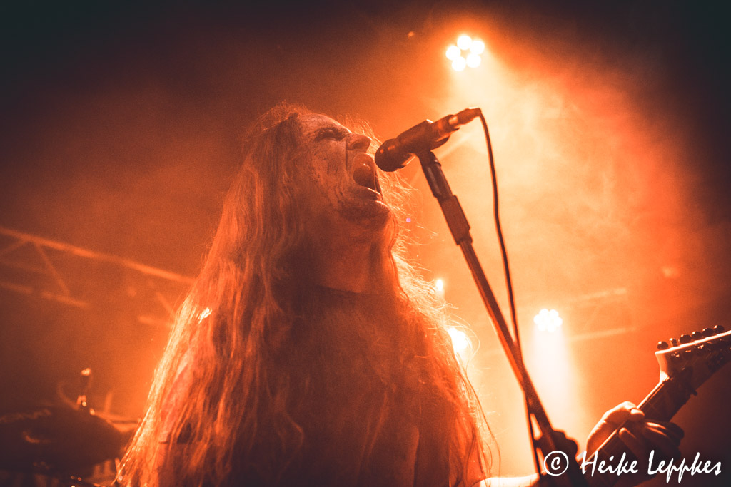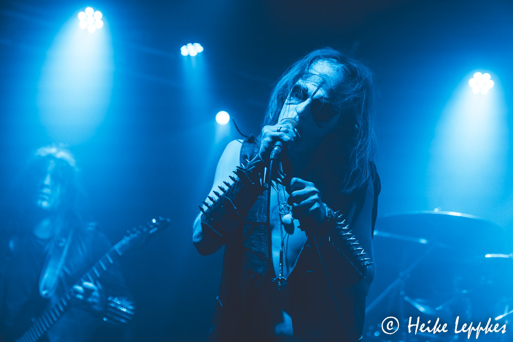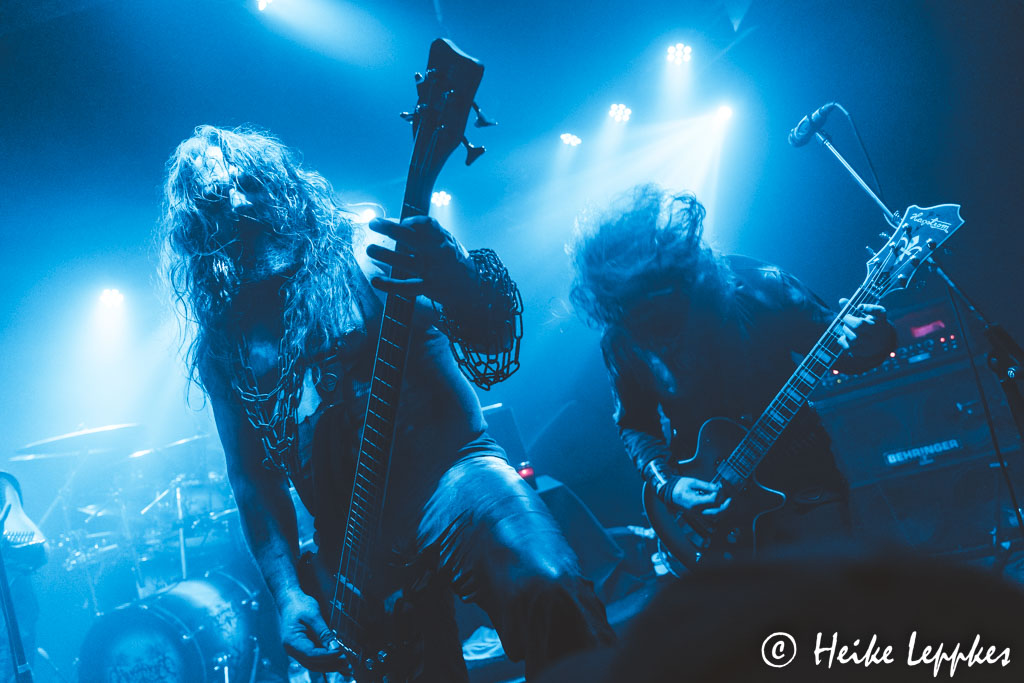Und dann kommen nacheinander die zwei Bands, die ich schon im April auch hier im Helvete erleben durfte. Anheim hätten heute eigentlich als zweite Band spielen sollen, aber die Running Order wurde, warum auch immer, kurz vor Beginn noch einmal umgestellt, also spielen sie jetzt in der „goldenen Mitte“. Aus Würzburg kommt die Band, und so gesprächig, wie sie noch vor der Show waren, gibt’s, wie auch bei den anderen Bands, fast nur die Musik auf die Ohren. Das ist bei Anheim sehr geiler Melodic Black Metal, der sich auch gern mal aggressiv gibt und sich meistens im höheren Tempo bewegt. Dass es die Band erst seit ungefähr zwei Jahren gibt, lässt sich beim Zuschauen nicht erahnen, denn da steht eine kompakte Einheit auf der Bühne. Mitgebracht haben sie nicht nur ihre EP Maere einer alten Zeit aus dem letzten Jahr, sondern auch das aktuelle Album Anihorim, das mit seinen acht Tracks auf ungefähr 46 Minuten Spielzeit kommt. So haben die Jungs also wahrscheinlich bei der Setliste eher die Qual der Wahl, treffen aber mal wieder voll meinen Geschmack. So landet Anihorim dann nach der Show auch in meinem Rucksack.
