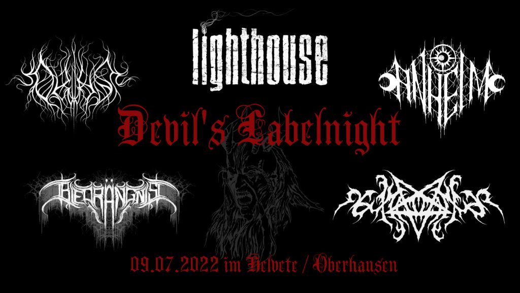 An meinem letzten Urlaubswochenende wird’s mal wieder schwarzmetallisch. Teufelszeug Records hat zur Devils Labelnight ins Helvete geladen und fünf Bands ins Line-Up gehievt. Die weiteste Anreise dürfte dabei die italienische Band Exterminas gehabt haben. Die hätten auf ihrer Fahrt nach Oberhausen wohl auch gleich die Band Bedrängnis mitnehmen können. Die kommen aus der Schweiz und haben heute ihren ersten Auftritt überhaupt. Und auch für Lighthouse ist es eine besondere Gelegenheit, sie feiern nämlich heute Record Release. Im Gegensatz zu sonst eher spärlich besuchten Undergroundshows ist das Helvete heute gut gefüllt; wie eigentlich immer, wenn Black Metal angesagt ist.
