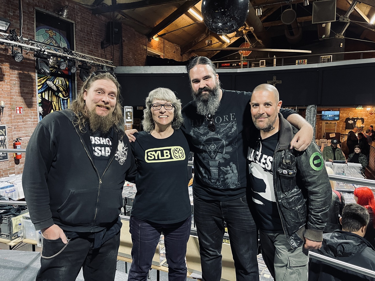 Viele der Metalfans verlassen den Kulttempel mit vollgepackten Taschen, aber zwei der Anbieter haben wohl eine lange Heimfahrt, denn sie bauen schon vor dem für 17:00 Uhr geplanten Ende ab. Auch die beiden Vertreter der Band Corporal Shred streichen schon ziemlich früh die Segel und sind raus, bevor ich mich gegen 15:00 Uhr ebenfalls verabschiede. Ich hatte zwar meine Kamera dabei, aber die Fotos zu dieser Nachbetrachtung sind alle mit dem Handy aufgenommen. Fotos von den Verkaufsständen habe ich nicht gemacht, ich denke mal, ihr wisst alle, wie die aussehen. Große Boxen, wahlweise aus durchsichtigem Plastik bzw. Holz oder Pappe, in denen die Vinyl- oder CD-Editionen zum „Durchblättern“ einladen.