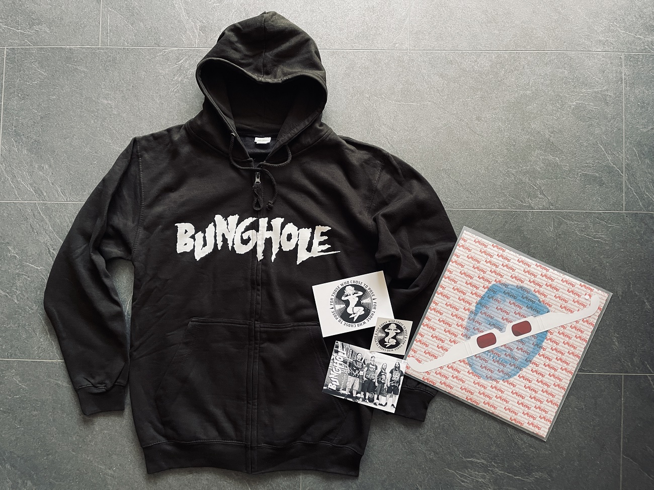Bei God’s Army ist heute Drummer Mark nicht vor Ort, bei Bunghole fehlt Gitarrist Torsten. Aber zwischen Bier, leckerer Currywurst vom Grill und Fotos mit beiden Bands ergeben sich auch hier sehr nette Gespräche. Dabei erzählt mir Sänger Patrick auch von den anstehenden Shows, unter anderem zwei Mal als Support für Cro-Mag. Bunghole haben ja gerade ebenfalls via ftwctp-Records ihr Album Preparation For Damnation veröffentlicht, und ich gönne mir, neben einem Bunghole-Zipper, auch ein Exemplar der Clear Vinyl-Edition. Die muss ich mir allerdings direkt am Stand von ftwctp-Records abholen, denn Bunghole selbst haben kein Exemplar mehr vorrätig. Auch am Stand von ftwctp-Records entwickelt sich noch ein sehr nettes Gespräch mit Kristina, die das Team um Jörg würdig vertritt.