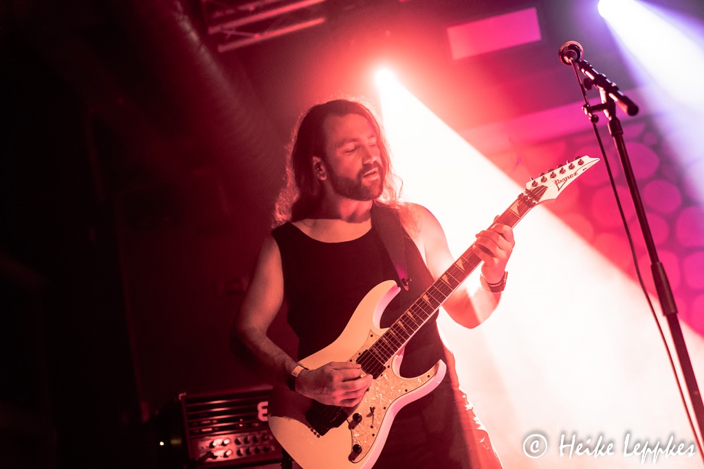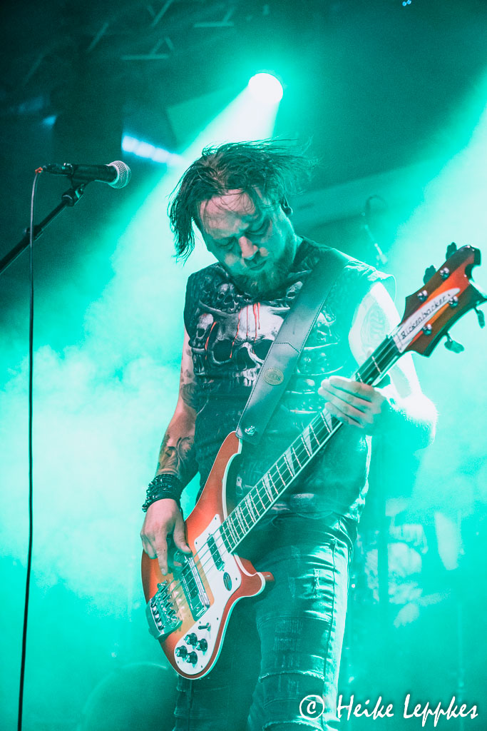 Nach diesem richtig geilen Start in den heutigen Konzertabend gibt’s mit Relate die einzige Band, die nicht so wirklich rockig daherkommt. Dafür entschuldigt sich Sänger Patrick fast schon, weist aber mit einem Augenzwinkern darauf hin, dass man zumindest einige ansatzweise rockige Coverversionen mitgebracht habe. Außerdem seien Metalheads ja sowieso die tolerantesten Musikfans überhaupt. Das beweist sich dann bei der sehr durchdachten Show, bei der Patrick eindeutig im Mittelpunkt steht. Der folgt seiner eigenen Choreografie und ist nur auf der Bühne unterwegs. Da kommen die Fans in der ersten Reihe gar nicht mit dem fotografieren hinterher, aber sie haben trotzdem ihren Spaß. Den habe ich tatsächlich auch, wobei mir die eigenen Songs fast besser gefallen, als die Coverversionen von Rebel Yell (Billy Idol) oder Take On Me (A-ha). Aber selbst bei letzterem stimmen nicht nur die Fans lauthals in den Gesang ein. Relate müssen heute zwar ohne Bassisten auskommen, aber da Patrick, wie er erzählt, jedes Bandmitglied dazu „verdonnert“ hat, jeden Song einmal allein einzuspielen, kommt seine Spur heute vom Laptop. Die Zeiten, in denen ich Synthpop noch regelmäßig gehört habe, sind zwar schon lange vorbei, aber das ist schon eine sehr coole Show von Relate.