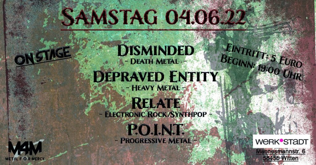 Als diese Veranstaltung zum ersten Mal in meinem Feed auftauchte, kannte ich von den vier Bands noch drei. Leider mussten dann sowohl Painata als auch Rockwerk Orange relativ kurzfristig absagen. Dass der Metal For Mercy e. V. für beide Bands noch würdigen Ersatz gefunden hat, grenzt schon fast an ein Wunder. Da kamen teilweise noch am Vortag die Zusagen, und dass man dann als Band auf den Punkt topfit ist, ist ebenfalls bemerkenswert. Da in der Werkstadt Witten heute Abend eine Hochzeitsfeier stattfindet, findet diese Show im nebenan gelegenen Treff statt. Aber auch das Treff ist bestens ausgestattet, und auf sein Team kann sich Florian heute auch wieder verlassen.