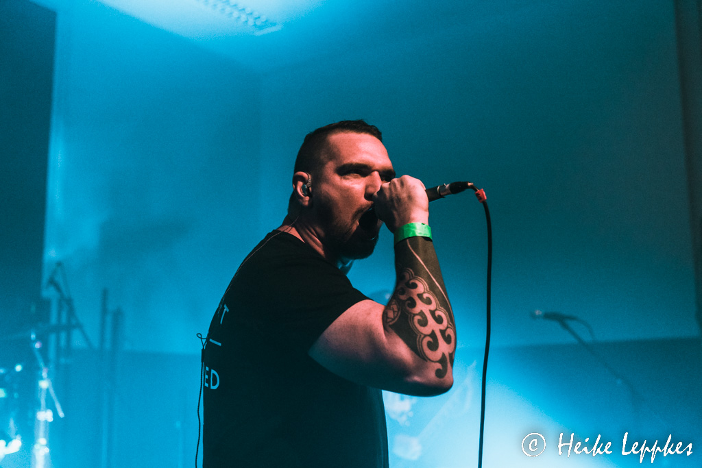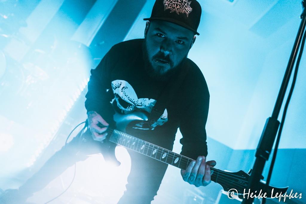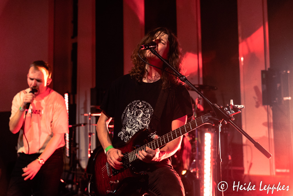 Als ich in der Promophase für diese Show gelesen habe, dass The Narrator heute mit dabei sind, stand mir zugegebenermaßen erstmal der Mund offen. Den Bandnamen hatte ich ja schon sehr oft gehört und gelesen, aber live hatte ich die Jungs noch nicht erlebt. Dachte ich zumindest, aber in einem Gespräch nach der Show stellte sich heraus, dass ihr Sänger Fabian ein sehr gutes Gedächtnis hat. Der wusste nämlich noch, dass ich bereits bei einer Show im Jahr 2018 in Duisburg Fotos von den Jungs gemacht hatte. Damals waren The Butcher Sisters der unangefochtene Headliner, heute sind sie es selbst. Eine sehr ungewohnte Situation für sie, wie sie mir erzählen, denn normalerweise sind sie eher Opener. So müssen sie heute leider mit dem Phänomen kämpfen, dass die letzte Band oft die A…karte hat, weil viele Besucher schon weg sind. Aber die haben definitiv was verpasst, denn The Narrator spielen, als wenn sie vor zigtausenden stehen, und können mit Songs wie Lucid, Deathbed, Hindsight und Ark auch zu später Stunde noch für Bewegung vor der Bühne sorgen.