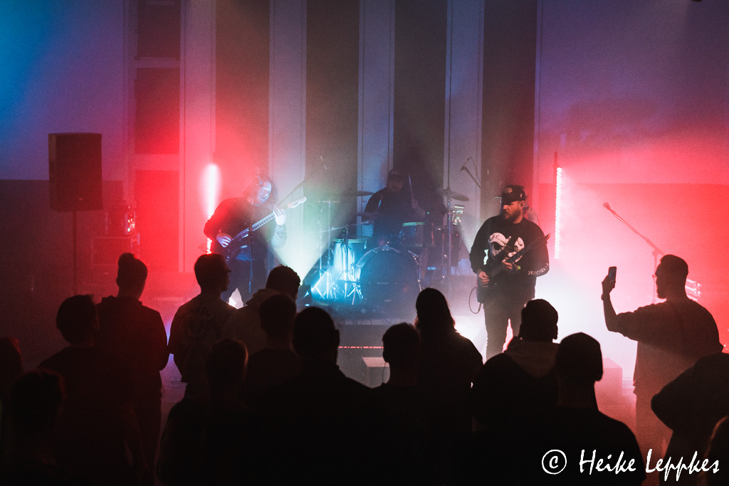 An die letzte Show von Matter Of Time kann ich mich noch sehr gut erinnern. Das war bei der Kulturnacht 2022 im Monkeys (ebenfalls in Solingen), wo sie mich mit ihrem „Harmonic Metalcore“, wie sie es selbst nennen, und auch mit ihrer visuell ausgeklügelten Show begeistert haben. Im März hatte ich schon gehört, dass sie auch schon als Sextett und mit anderer musikalischer Ausrichtung unterwegs waren, und auch heute wird mir das wieder erzählt. Jetzt stehen sie aber als Trio auf der Bühne und präsentieren nicht nur die vier Songs von der aktuellen EP I. Memories Of Our Past. Auch die New Horizons EP aus 2018 findet mit dem Song We Are The Same Platz auf der Setliste. Am kommenden Wochenende stehen die drei noch einmal in Hilden auf der Bühne. Da ich bei der Show leider nicht dabei sein kann, freue ich mich umso mehr, sie heute live erleben zu können.