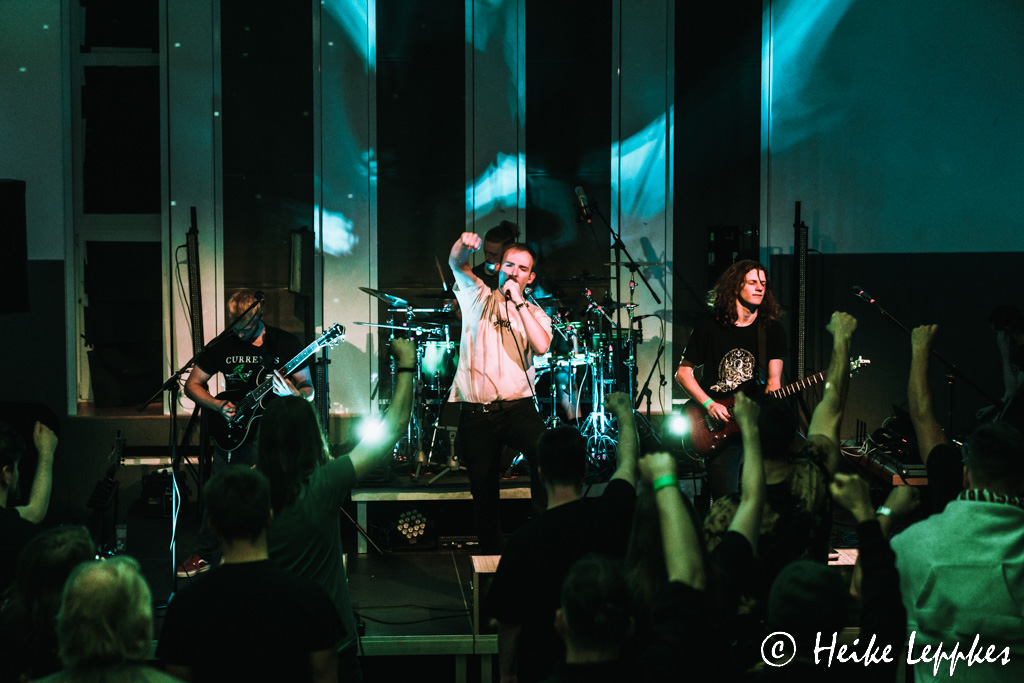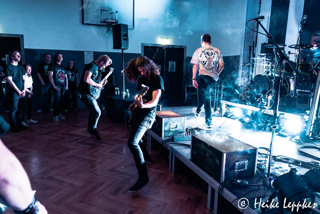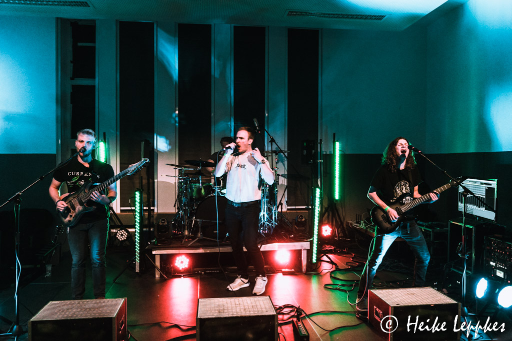 Gerade am vergangenen Wochenende war ich ja schon einmal in Solingen, da allerdings beim Laut & Hart Festival im Cobra. Dort standen an den zwei Tagen jeweils sechs Bands auf der Bühne. Heute ist der Rahmen etwas kleiner, drei Bands wollen gemeinsam mit Northern Light im Haus der Jugend die Veröffentlichung der Single How To Live feiern. Von den insgesamt vier Bands habe ich zwei schon live erleben dürfen. Das denke ich jedenfalls noch vor der Show, darf mich aber später korrigieren (lassen). Das Haus der Jugend überrascht mich mit einem relativ großen Konzertraum, in einem Gespräch erzählt mir der Leiter, dass knapp 250 Personen reinpassen. Die kommen heute nicht, aber die Show ist doch relativ gut besucht. Die Bands haben auch beim Merch ordentlich aufgefahren Leider verpasse ich es, mich vor Ort einzudecken (das wird nachgeholt). Aber dafür ergeben sich immer wieder sehr nette Gespräche, mit Bandmitgliedern und auch Besuchern.