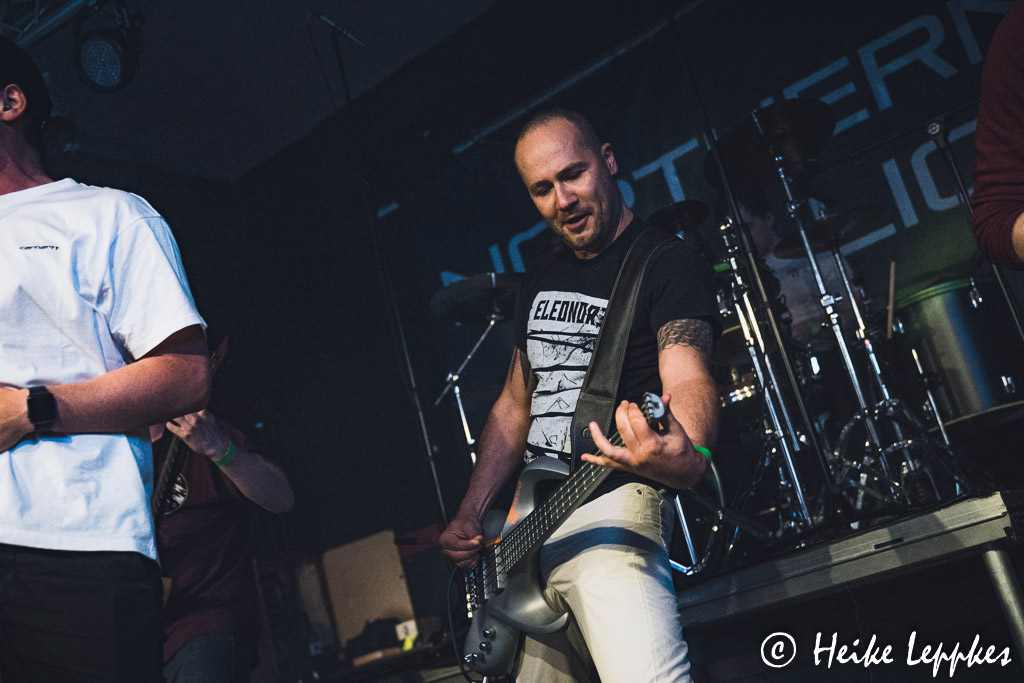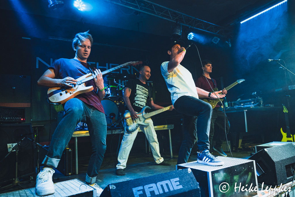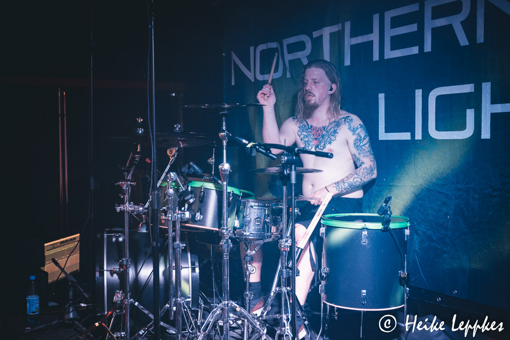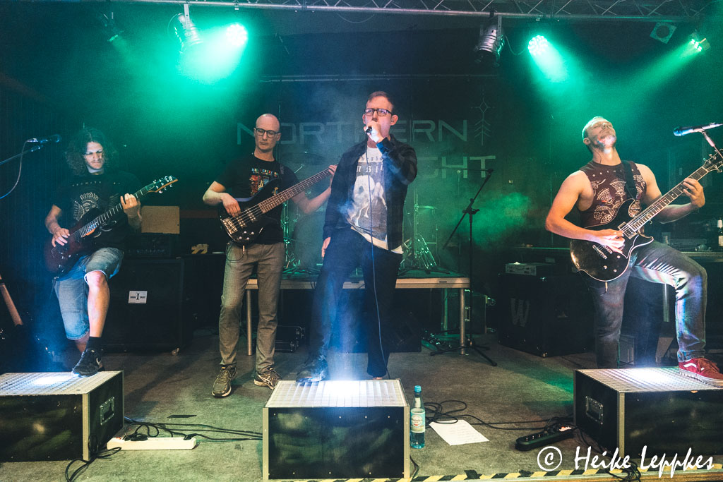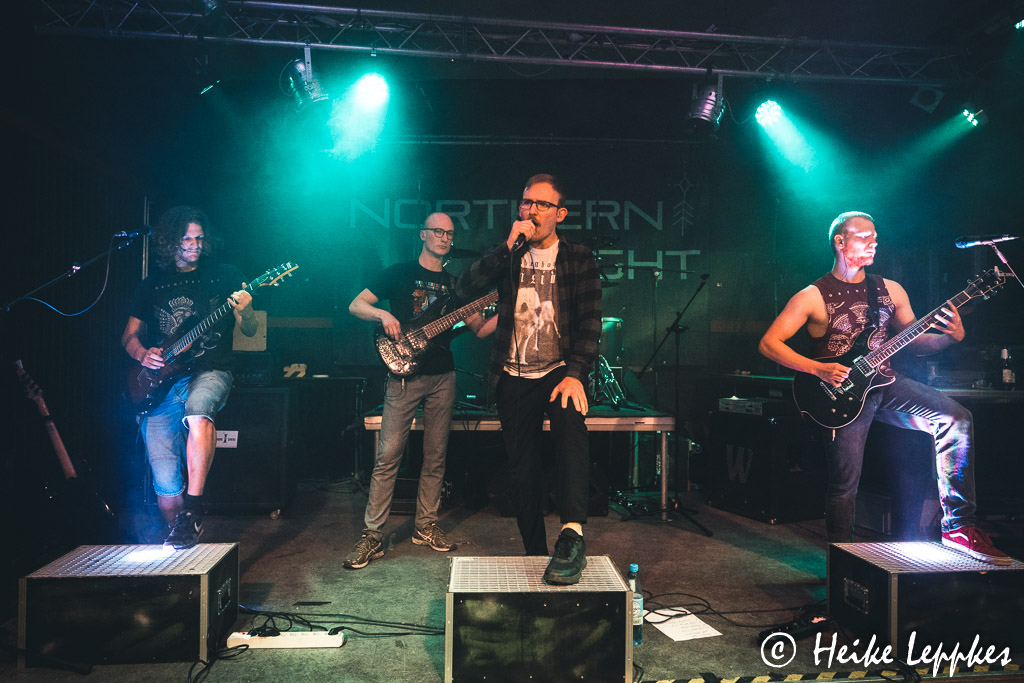 Wie oft ich Northern Light jetzt schon live erleben und auch über sie schreiben durfte, zähle ich schon gar nicht mehr. Jede Show ist neu, jeder Song zeigt die Entwicklung, die die vom Quartett auf ein Quintett angewachsene Band immer wieder vollzieht. Und zum Thema „Quintett“: Pascal hat den Bass abgegeben und konzentriert sich jetzt voll auf den Gesang. Neu im Team ist Florian, der sich um den Tieftöner kümmert. Das tut er mit einer Ruhe, die mir schleierhaft ist, denn ich kann bei den sehr geilen Tracks genauso wenig stillstehen, wie die meisten der anderen Gäste in Pauls Savanne. Vier Songs von der EP Into The Dark aus dem vergangenen Jahr haben es auf die Setliste geschafft. Mit Out Of My Mind hatte ich bei den ersten Hördurchläufen zunächst mal so meine Probleme, denn der wartet doch mit einigen Rhythmus- und Tempowechseln auf. Aber das ist halt genau das, was Northern Light ausmacht, und mittlerweile feiere ich den Song genauso ab, wie zum Beispiel Vicious Circle, der mich gleich beim ersten Hören geflasht hatte. Genau wie Ignore The Sirens waren natürlich auch Northern Light nicht untätig und haben einige neue Songs mitgebracht. Die sollen dann, wie Pascal erzählt, auf dem irgendwann mal erscheinenden Full Length-Album ihren Platz finden. Heute haben sie ihren Platz auf der Setliste gefunden, und nicht nur ich bin mehr als begeistert von How To Live, Stone By Stone oder Two Cores. Im Gegensatz zu Ignore The Sirens haben Northern Light keine Zugabe eingeplant und auch alle Songs bereits gespielt. Aber die Mehrheit, inklusive ich, will Stone By Stone noch einmal hören. Also gibt’s denn jetzt noch einmal, bevor die Jungs ziemlich geplättet die Bühne verlassen.