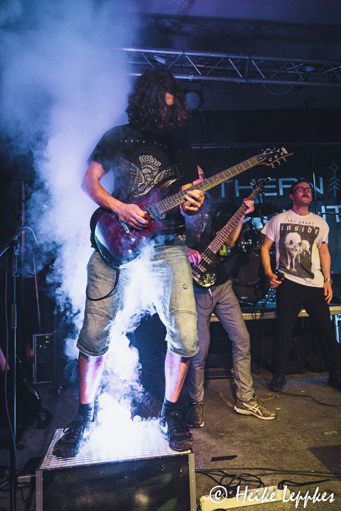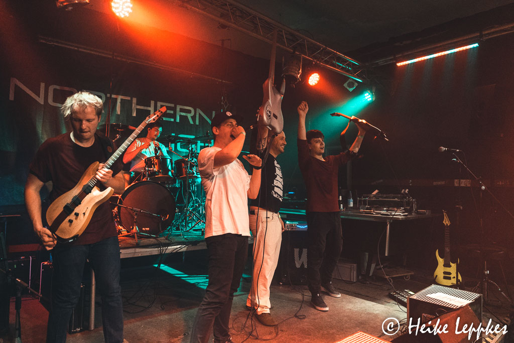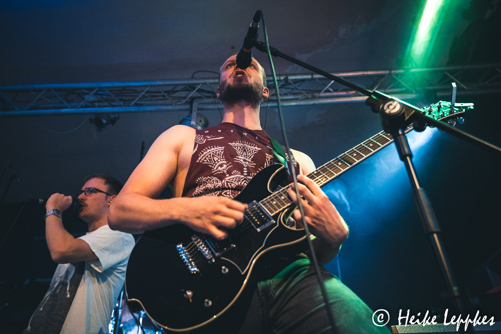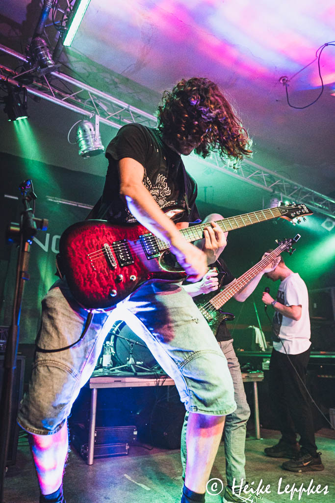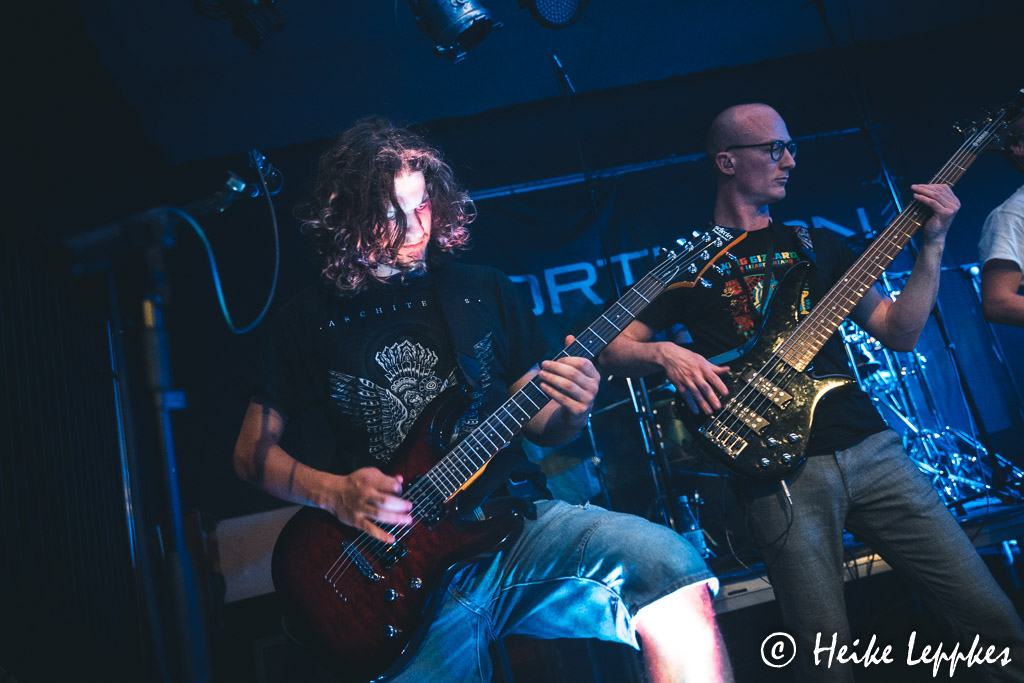 Wie oft ich Northern Light jetzt schon live erleben und auch über sie schreiben durfte, zähle ich schon gar nicht mehr. Jede Show ist neu, jeder Song zeigt die Entwicklung, die die vom Quartett auf ein Quintett angewachsene Band immer wieder vollzieht. Und zum Thema „Quintett“: Pascal hat den Bass abgegeben und konzentriert sich jetzt voll auf den Gesang. Neu im Team ist Florian, der sich um den Tieftöner kümmert. Das tut er mit einer Ruhe, die mir schleierhaft ist, denn ich kann bei den sehr geilen Tracks genauso wenig stillstehen, wie die meisten der anderen Gäste in Pauls Savanne. Vier Songs von der EP Into The Dark aus dem vergangenen Jahr haben es auf die Setliste geschafft. Mit Out Of My Mind hatte ich bei den ersten Hördurchläufen zunächst mal so meine Probleme, denn der wartet doch mit einigen Rhythmus- und Tempowechseln auf. Aber das ist halt genau das, was Northern Light ausmacht, und mittlerweile feiere ich den Song genauso ab, wie zum Beispiel Vicious Circle, der mich gleich beim ersten Hören geflasht hatte. Genau wie Ignore The Sirens waren natürlich auch Northern Light nicht untätig und haben einige neue Songs mitgebracht. Die sollen dann, wie Pascal erzählt, auf dem irgendwann mal erscheinenden Full Length-Album ihren Platz finden. Heute haben sie ihren Platz auf der Setliste gefunden, und nicht nur ich bin mehr als begeistert von How To Live, Stone By Stone oder Two Cores. Im Gegensatz zu Ignore The Sirens haben Northern Light keine Zugabe eingeplant und auch alle Songs bereits gespielt. Aber die Mehrheit, inklusive ich, will Stone By Stone noch einmal hören. Also gibt’s denn jetzt noch einmal, bevor die Jungs ziemlich geplättet die Bühne verlassen.