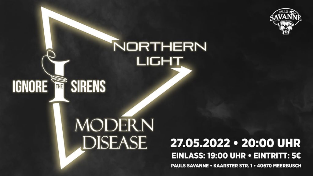 Ging es vorgestern bei der Show in Wermelskirchen (hier gibt’s den Bericht) noch international zu, wird es heute eher regional, um nicht zu sagen lokal. Auch die Entfernung zur Location ist für mich wesentlich kürzer, ich muss im Grunde nur ein Mal über den Rhein fahren, dann bin ich auch schon bei Pauls Savanne in Meerbusch-Osterath. Als ich eintreffe, haben die Jungs den Aufbau schon hinter sich gebracht und sitzen im gemütlichen Innenhof. Auf dem Konzertbanner stehen noch drei Bands, aber Modern Disease hatten leider abgesagt, und so kurzfristig war keine Ersatzband aufzutreiben. So kann man also ganz entspannt auf den Zeitplan gucken.
