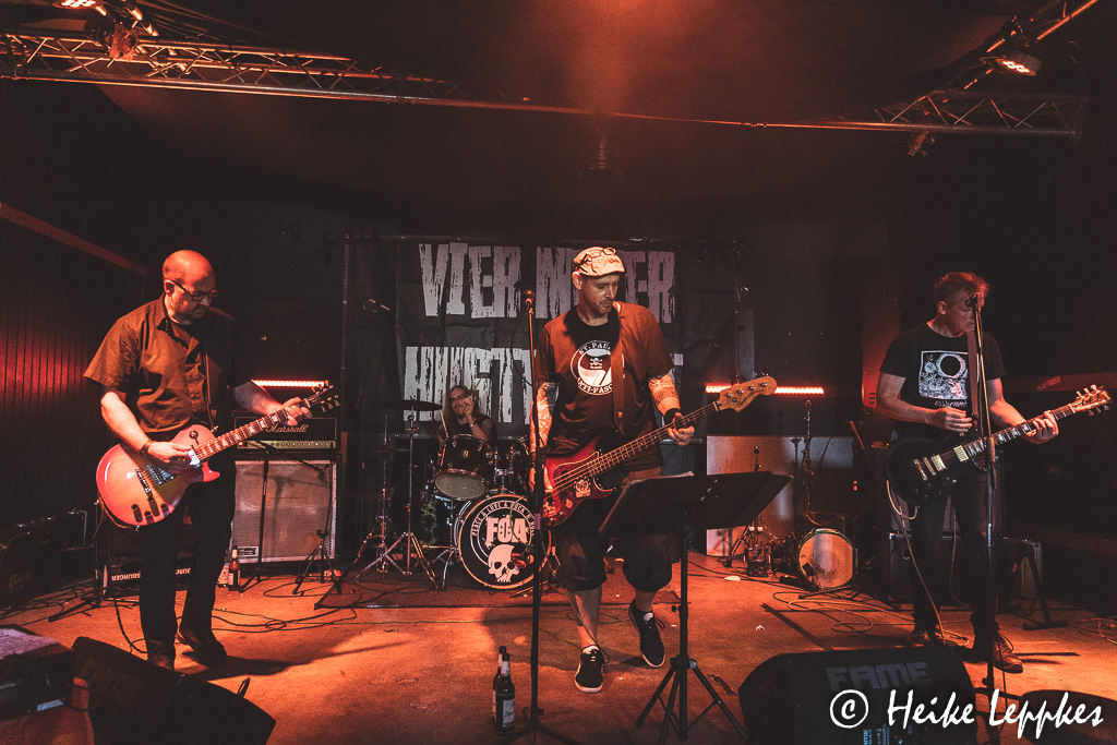 Wenn man in eine der diversen Suchmaschinen „Fixpunkt“ eingibt, kommen zwar unzählige Suchergebnisse, die aber mit der Band so gar nichts zu tun haben, sondern sich entweder mit Klettern beschäftigen oder mit mathematischen Berechnungen. Ob das zur Entscheidungsfindung bei der Benennung der Band beigetragen hat, habe ich die vier aber nicht gefragt. 😀 Die Band Fixpunkt kommt, grob gesagt, vom Niederrhein. Da lässt man sich nicht so schnell aus der Ruhe bringen, und das lassen sich auch die vier heute nicht. Aber natürlich beziehen auch sie nicht nur in politischen Fragen ganz klar Stellung oder erzählen „einfach“ nur kleine Geschichten aus dem täglichen Leben. Auf der Setliste finden sich Songs wie Nie Mehr, Hamsterrad oder Selbstversuch, die Titel sind ja fast schon selbsterklärend.